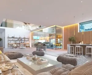 Vestida de blanco con toques de madera que van de la mano para crear un sugerente juego visual de texturas. La simplicidad de su silueta, la sabia combinación de materiales y la armonía con el entorno natural son las claves de Bay 8. La celebración de una vida tranquila. Es un espacio funcional que te permite disfrutar de todo, desde un gimnasio privado hasta relajarte en el sofá viendo una película.