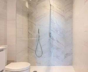 Cet appartement dispose de 3 chambres dans la chambre principale, vous pourrez ajouter un lit queen size avec sa propre salle de bain attenante. La deuxième chambre gérerait un lit queen et la troisième chambre serait utilisée comme bureau ou vous pourriez ajouter un lit gigogne simple/king en fonction. Il y a 2 salles de bains avec de luxueuses douches à l'italienne à effet de pluie. La salle de bains principale dispose de doubles lavabos et de porte-serviettes chauffants.