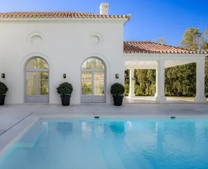 Située dans le quartier distingué de La Cerquilla, cette villa émerge comme un phare de luxe suprême. Avec ses éléments de design qui évoquent l'élégance d'un domaine de campagne français, cette résidence remarquable est parfaitement située dans la Vallée du Golf, à deux pas du prestigieux parcours de golf Los Naranjos près de Marbella.