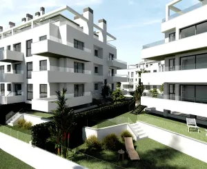 Ground floor apartments with private gardens and large communal areas with landscaped gardens and swimming pools.