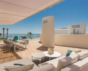 New investment on the first coastline in Estepona with panoramic sea views! Penthouse with 3 bedrooms, 3 bathrooms and 3 parking spaces. You can live in luxury today!