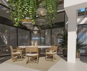 Эта вилла сочетает в себе роскошь и природу в исключительной среде. Она спроектирована для того, чтобы наслаждаться средиземноморским образом жизни в расслабленной атмосфере. Представьте, как сливаетесь с лучами солнца, расслабляетесь на зоне отдыха у бассейна, собираете свежие овощи из собственного сада или качаетесь на шезлонге на закате ленивым летним днем.