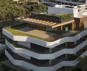 Экологичные объекты заливают интерьеры светом благодаря большим окнам и раздвижным дверям. Кроме того, пентхаусы имеют большие крытые террасы от 55 до 357 квадратных метров, а единицы на первом этаже включают в себя собственный частный сад.
