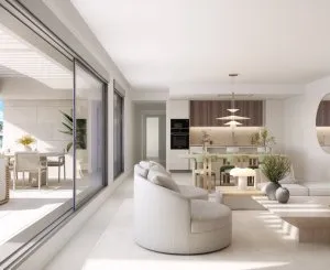 В жилых домах предусмотрены просторные террасы, а в апартаментах на первом этаже есть собственные сады. Впечатляющие пентхаусы оснащены собственным бассейном. Открытая планировка создает ощущение простора, с крупной полностью оборудованной кухней, открывающейся в просторную гостиную, освещаемую большими окнами. Пройдя через них, вы выйдете на широкую террасу, чтобы насладиться открытыми видами.
